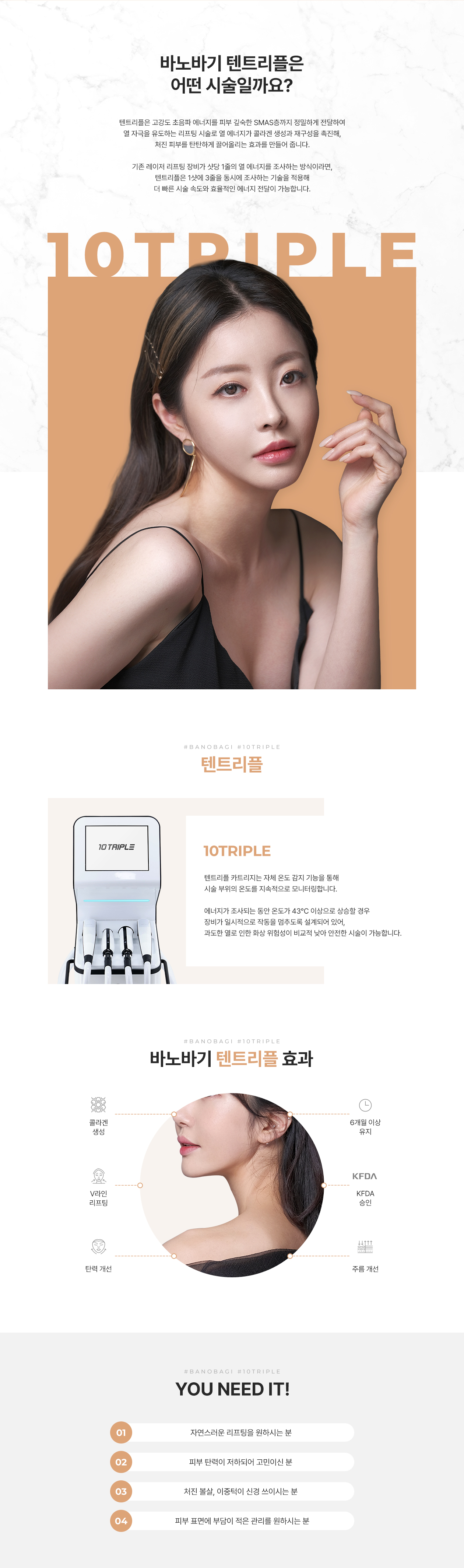 시술안내 리프팅 바노바기 시그니처 보톡스/윤곽 필러 리프팅 스킨부스터 레이저 바디 기타 텐트리플 텐트리플 리프테라2 슈링크 유니버스 텐쎄라 인모드 올타이트 리프팅 텐써마 민트실리프팅 잼버실리프팅 바비코